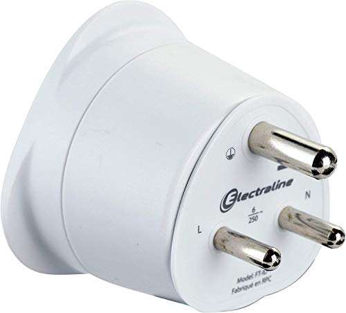 Electraline 70055 Adaptateur de voyage France/Europe vers Afrique du Sud 2 Broches Europe vers 3 Broches Afrique du Sud, Blanc