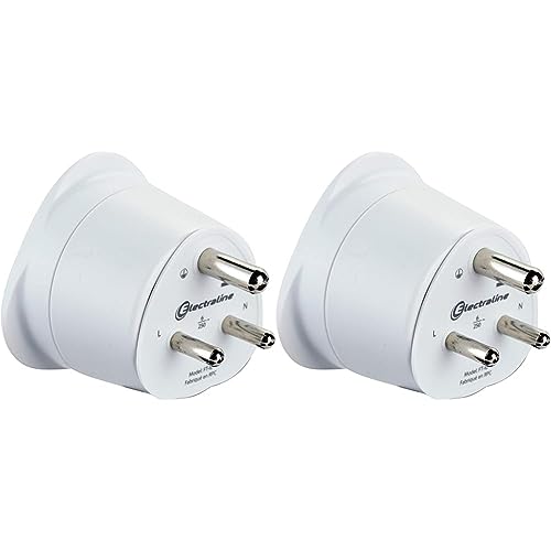 Electraline 70056 Adaptateur de Voyage France Indie 2 Europe vers 3 Broches Indiens, Blanc (Lot de 2)