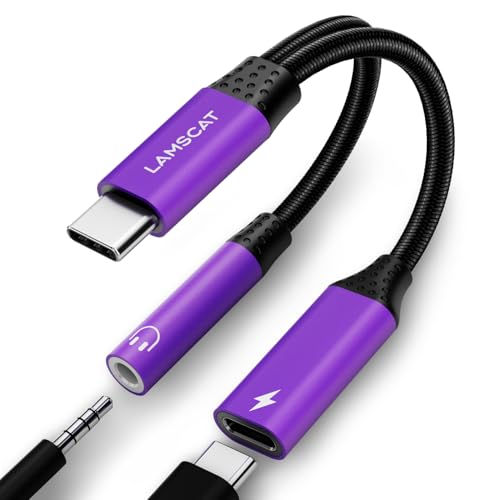 LAMSCAT Adaptateur et charge pour casque USB C, 2 en 1 type C vers jack 3,5 mm, prend en charge la charge rapide PD 60 W pour Samsung Google, Huawei et plus (violet)