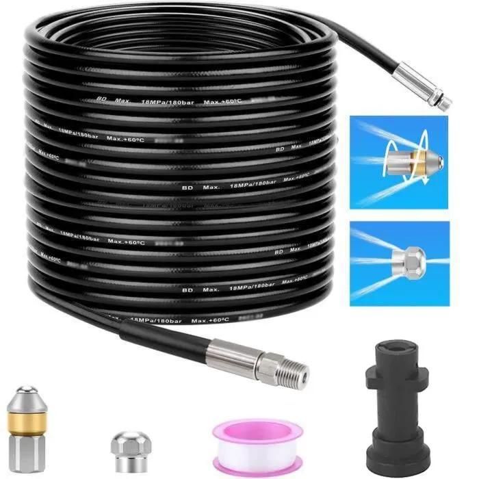 Tuyau de Nettoyage Haute Pression 20M 200 bar 60 C, Deboucheur Canalisation avec Adaptateur, pour Karcher K-Series (K1-K7) Lavor