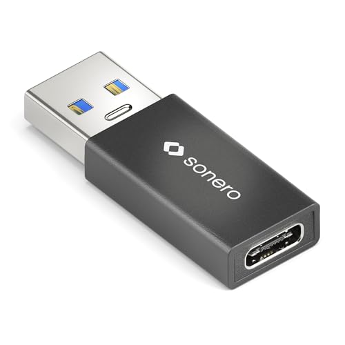 Sonero Adaptateur USB C vers USB A, Charge Rapide 3A 15W, 3.2 Gen1 10 Gbps Transfert de données, OTG, Compatible avec iPhone, Samsung Galaxy, Watch, Google Pixel et Bien d'autres, Noir