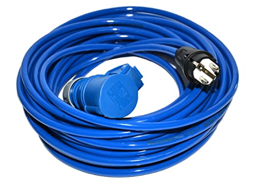 Hilark Rallonge Electrique H07RN-F 3g1,5 mm (3x1,5 mm) Prise Industrielle CEE fiche à 3 Broches Adaptateur pour Camping Car, Caravane, Bateau, Chantier (20 mètre, Bleu, Noir)