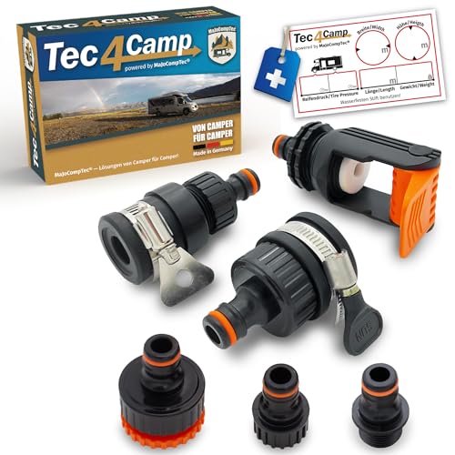 MaJoCompTec® ALLCONNECT Kit de raccordement universel pour robinet d'eau | Raccord de robinet d'eau réglable pour robinet extérieur sans filetage | Kit adaptateur pour camping-car caravane bateau (Kit