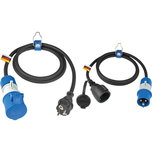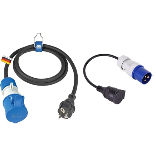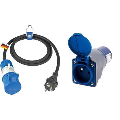 as - Schwabe Câble Adaptateur CEE pour Le Camping 1.5m, coupleur CEE 3 pôles avec indicateur & Electraline 20848043M Adaptateur pour caravanne, Bleu