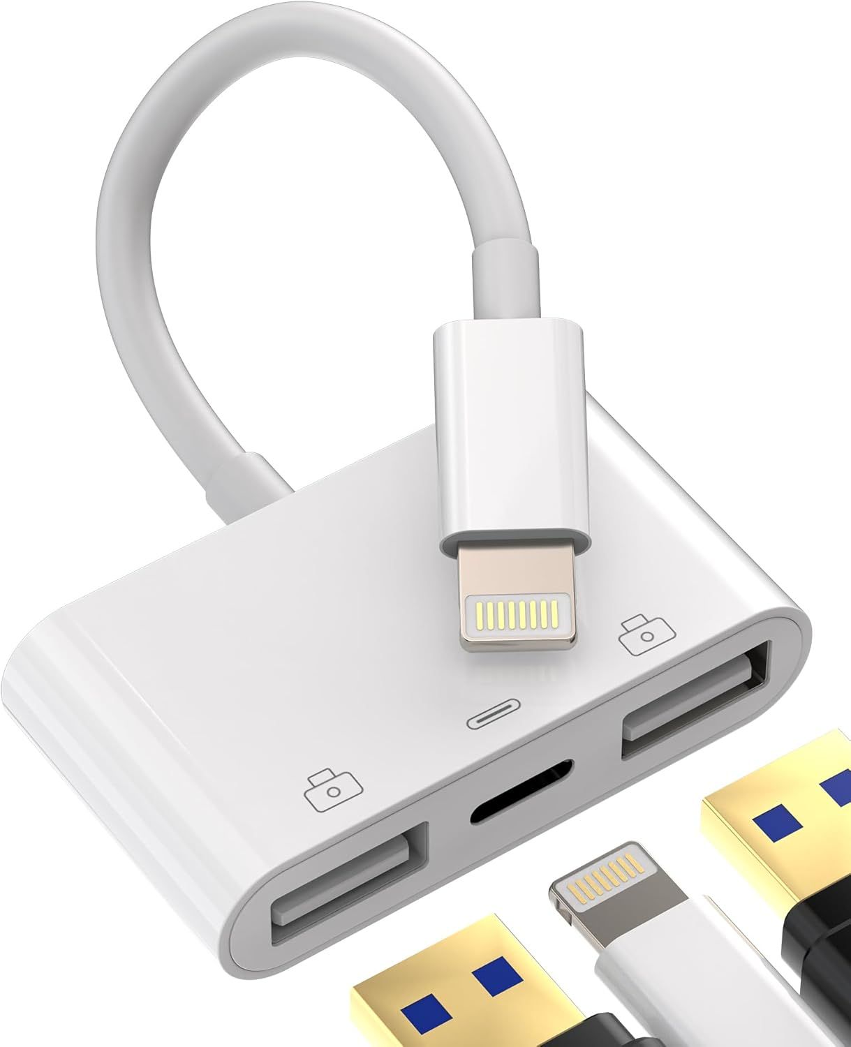 Adaptateur Usb Vers Lightning(3 En 1) Chargeur Cable Usb A Prise Camera Otg 3.0 Iphone Jack Charger Certifié Apple Mfi Pour 14 13 12 11 Pro Max 7 8 Plus X Se Xs Xr Ipad Air Tablette Cle Convertisseur