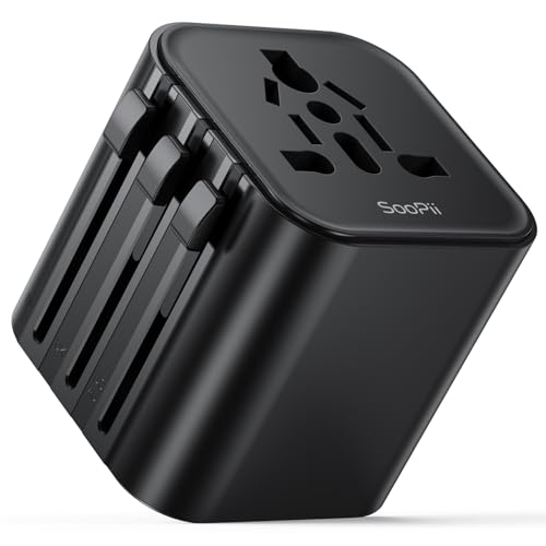 SooPii Adaptateur Universel pour Voyages avec Prises CA (Types A, C, G, I) Compatible Prises Internationales : Royaume-Uni, É-U, UE, Japon, Irlande, Australie + 200+ Pays