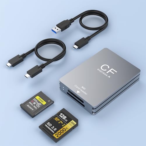 Lecteur de Carte CFexpress Type A & SD 2 en 1, Lecteur de Carte Mémoire CF Express Type A de USB 3.1 (Gen 2) 10Gpbs Aluminium CFexpress Type A & SD Carte Adaptateur pour Windows/Mac/Linux/Android