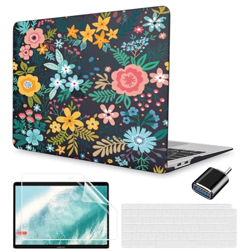 MUSHUI 4 en 1 Coque pour MacBook Air 13 Pouces M4 M3 M2, 2025 2024 2022 (A3240 A3113 A2681) Touch ID, Protection Étui Rigide en Plastique & Protège Clavier & Adaptateur USB C pour Mac Air 13.6 - New19