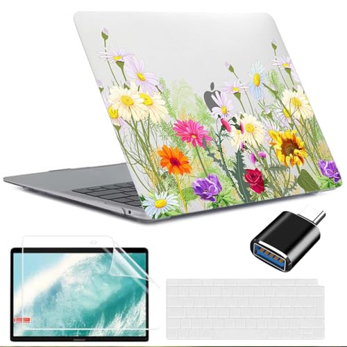 MUSHUI 4 en 1 Coque Compatible avec MacBook Air 13 Pouces 2020 2019 2018 (M1 A2337 A2179 A1932), Coque Rigide en Plastique Fine & Protection Clavier & Adaptateur USB C pour Mac Air M1 - New10