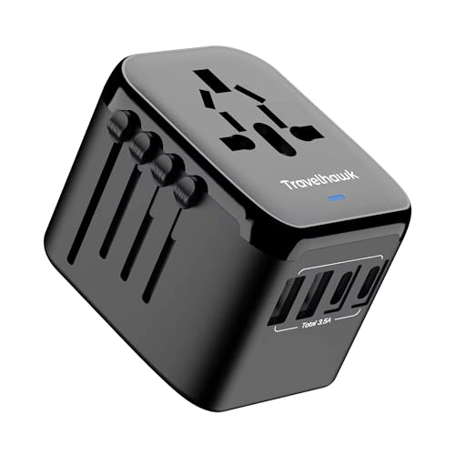TravelHawk Prise de voyage - Chargeur rapide 35 W Type G, Type A - 2 x USB-C et 2 x USB-A Prise mondiale - Adaptateur de voyage universel - Prise du monde - UK, USA, Australie, Asie, Amérique du Sud