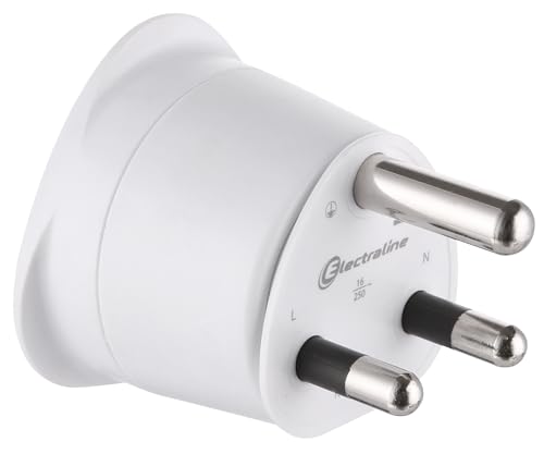 Electraline 70055 Adaptateur de voyage France/Europe vers Afrique du Sud 2 Broches Europe vers 3 Broches Afrique du Sud, Blanc