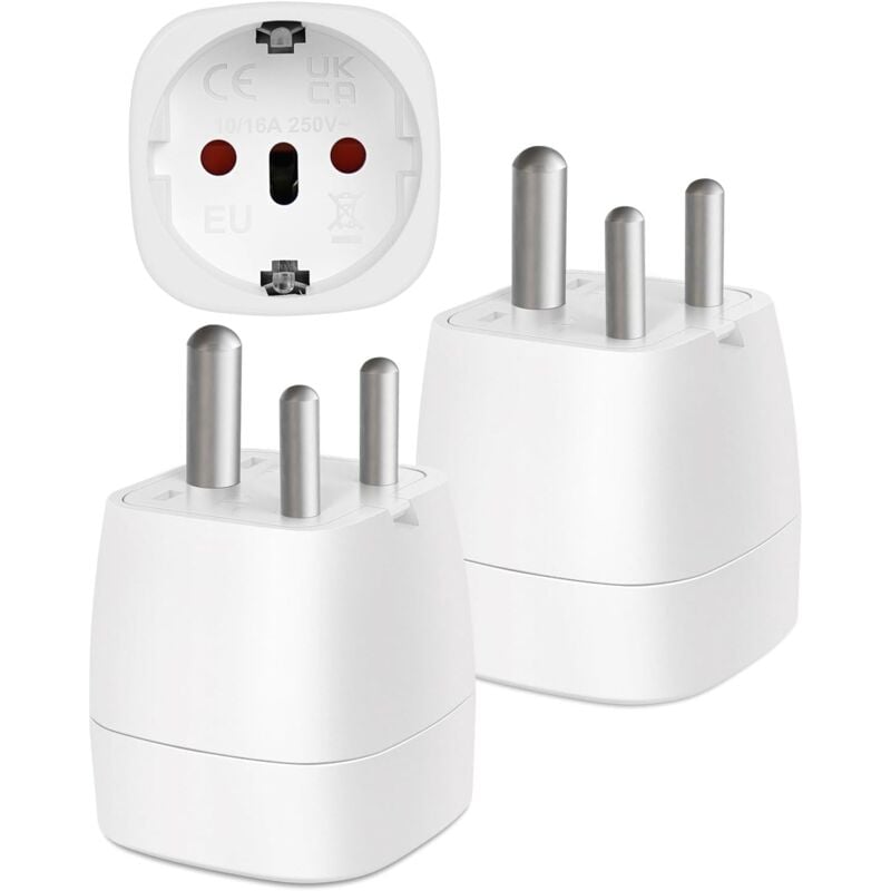 VINTAR 1PC Prise Adaptateur Italie, Adaptateur de Voyage Europe Francaise FR 2 Broches vers Italie 3 Broches pour Italie, Syrie, Uruguay, Chili, Maldives, Type L, Blanc