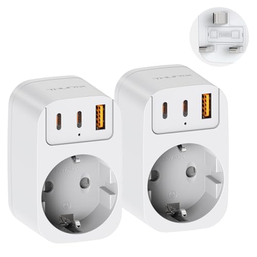THUNIX Lot de 2 Adaptateur Prise Anglaise, Prise UK avec 2 USB C et USB A, Adaptateur UK vers France, Type G pour Irlande, Écosse,Saoudite, Singapour, HK, Dubaï, Malte(Blanc)