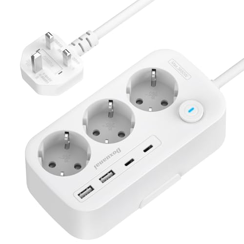 Adaptateur UK, Adaptateur de Prise EU vers UK avec 3 Prises et 4 Ports USB (2 USB-C), Adaptateur de Voyage Type G avec câble 1,5m pour UK/Ecosse/Irlande/Dubaï/Maldives/Singapour