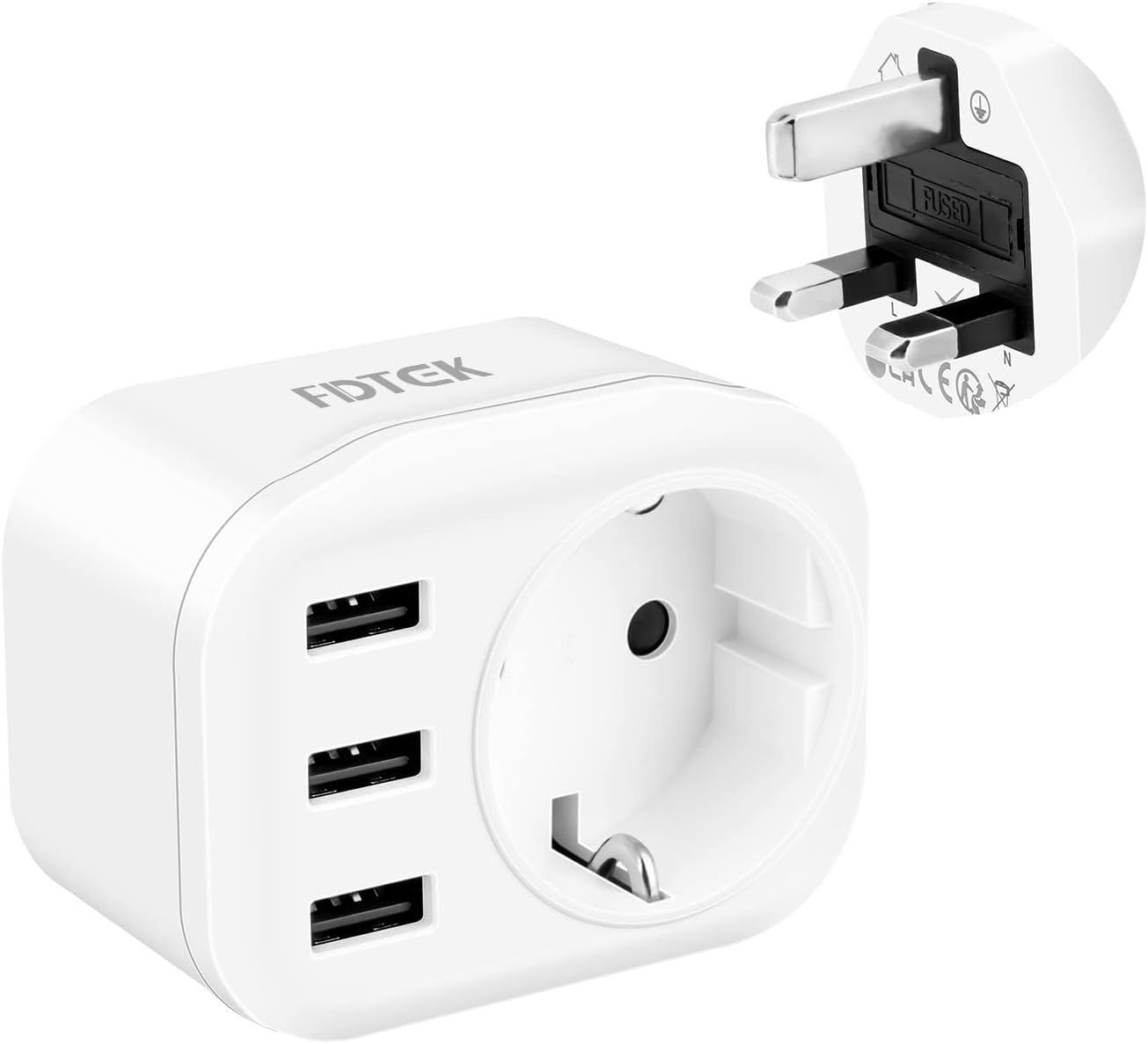 FDTEK 4 en 1 Adaptateur de Voyage Prise Anglaise UK avec 3 USB-A 2.4A, Adaptateur Prise Type G, Multifonction Prise pour UK, L'Irlande, Singapour, Dubai, Malaisie, Écosse