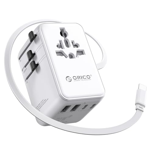 ORICO Adaptateur Universel de Voyage avec 2 Ports USB-C (PD 20W) et 1 USB-A, Adaptateur Prise Internationale pour France vers UE, Anglaise, États-Unis, AU, Chine, Japon, Thaïlande + 200 Pays -UA
