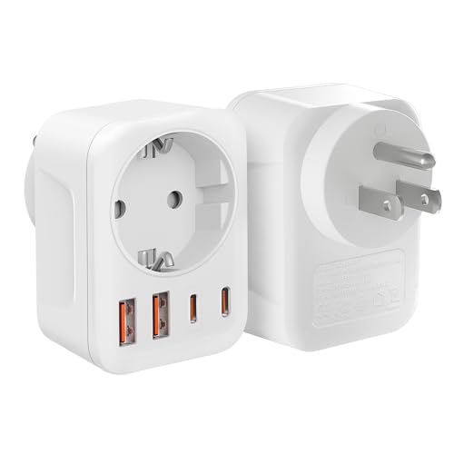6 en 1 Adaptateur Prise Japon, Adaptateur de Voyage Japon, Connecteur de Voyage France vers Le J-apon avec 2 USB A& 2 USB C, Connecteur Schuko vers Type A pour Les États-Unis, J-apon, Canada