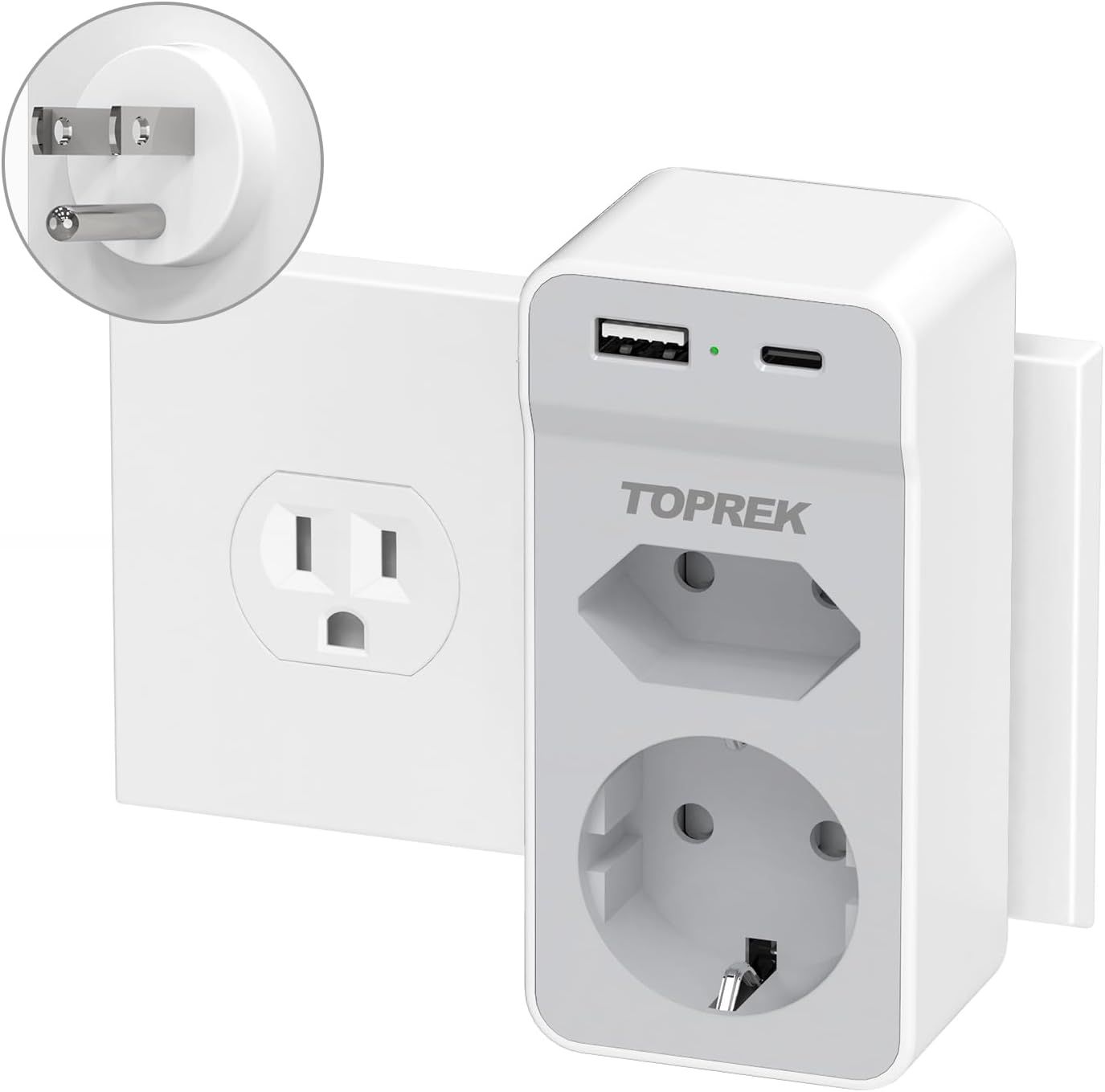 6 en 1 Adaptateur Prise France vers USA, Adaptateur Prise USA, Canada, Americaine avec 3 USB et 1 Type C (3,4A) et 2 Prises, Mexique Thaïlande Type B (Blanc)