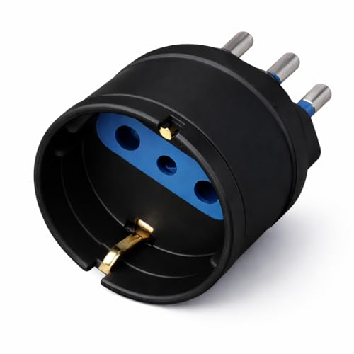 Ekon Adaptateur pour prise italo-allemande, prise italienne 16A, prise italo-allemande 16A, fabriqué en Italie, noir