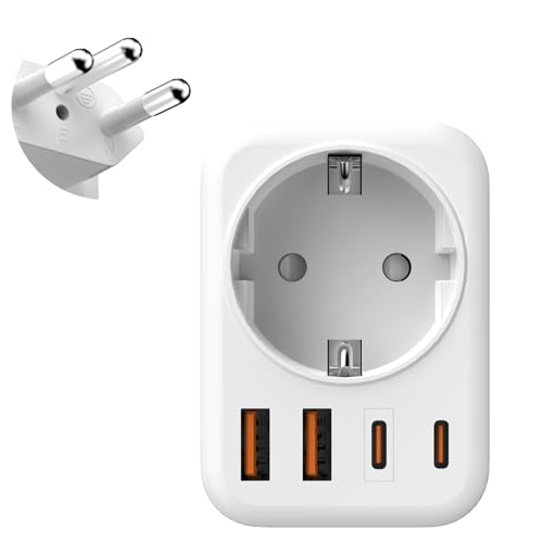 TESSAN Adaptateur Prise Italienne, Adaptateur Prise Italie vers France avec 1 USB C et 1 USB A, Type L, Adapter Italie Compatible avec Chili, Rome, Uruguay, Éthiopie, Florence, Venise, Milan
