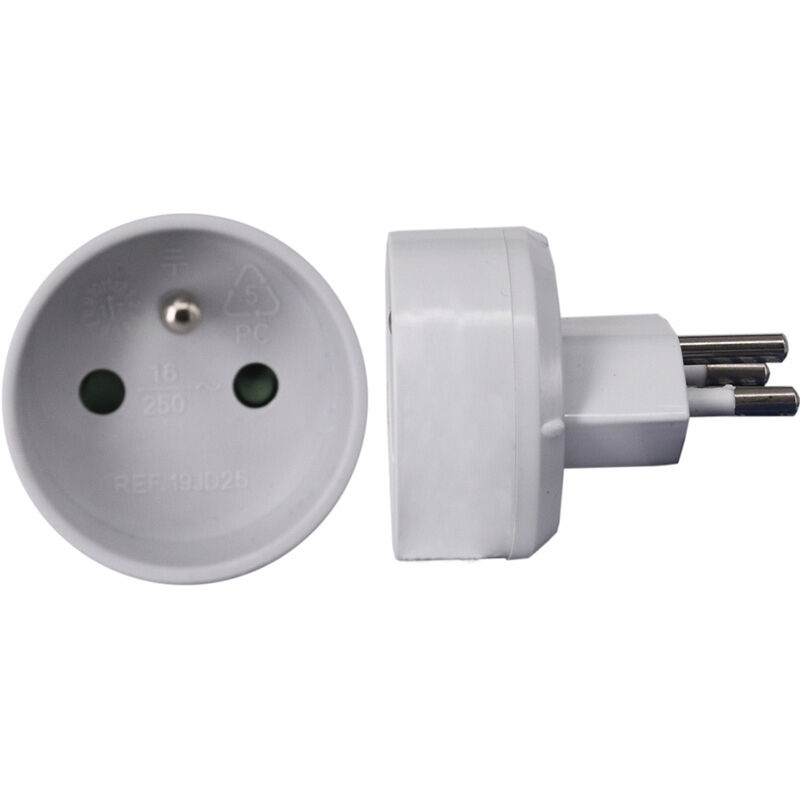 Zenitech - Adaptateur Prise Voyage France vers Italie - Mâle France/Femelle Italie avec Terre - Blanc - Compatible 230V, 16A, 2300W - Sécurisé pour Appareils Électroniques - Design Compact pour Voyage