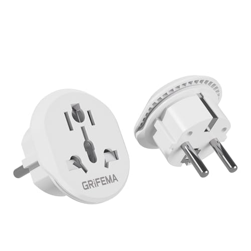 GRIFEMA Adaptateur de Voyage Universel (Lot de 2), Adaptateur Prise Voyage Monde vers France/Europe, 4000W Haute Puissance pour Prises Type C, E, F en France, Espagne, Allemagne