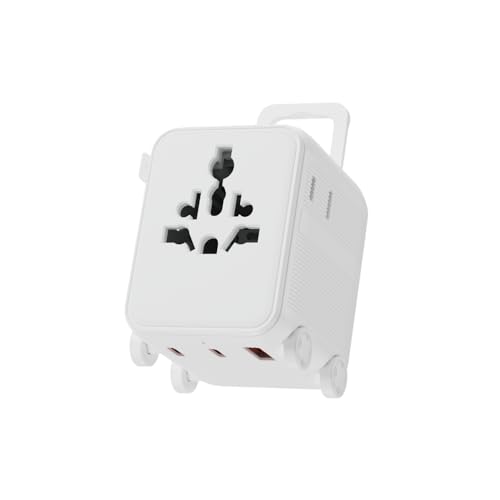 Adaptateur Prise Universelle de Voyage - Compatible avec +150 Pays - 2 Ports USB-C 1, Port USB-A Charge Rapide Prise US/UK/EU/CA/JP/CH/AUS - Xoopar Luggie Blanc