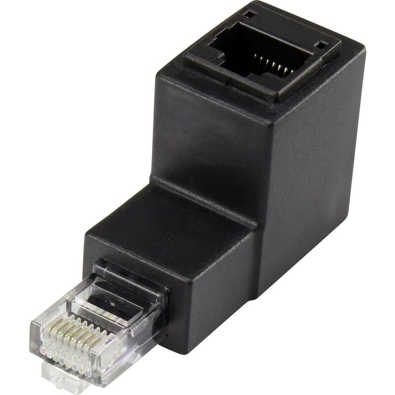 Renkforce - Adaptateur réseau informatique RJ45 cat 5e [1x RJ45 mâle - 1x RJ45 femelle] Coudé vers le bas à 90° 0.00 m noir Y851451