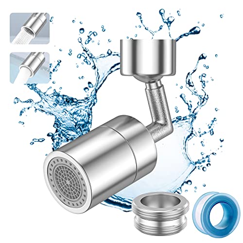 Vinabo Filtre de pulvérisation universel - Pivotant à 720° - Adaptateur de robinet - Mousseur de robinet - Filetage intérieur 22 mm et filetage extérieur de 24 mm - Argenté, Spritzfilter Wasserhahn