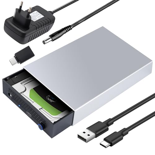 Boitier Disque Dur 3.5, 6Gbps UASP Boitier Disque Dur Externe USB 3.1 pour SSD/HDD, Boitier SSD Externe 2.5"/3.5", Adaptateur SATA USB pour Windows/Mac/Vista avec Adaptateur Type-C