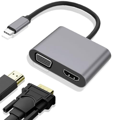 VGE Adaptateur USB-C vers HDMI et VGA [4K UHD/1080P 60Hz],Double Écran pour MacBook, MateBook, Yoga, Chromebook, Switch, PC Portable - Plug & Play, Compatible avec TV/Projecteur/Moniteur(Gris)