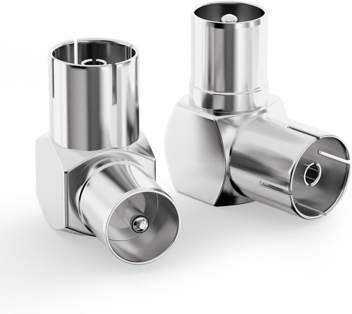 Adaptateur Coudé Antenne 90 Prise Mâle Vers Femelle En Angle Droit (Iec/Pal) Connecteur Coaxial Rf Pour Câble Tv, Tnt, Dvb-T Dvb-T2 Hd, Câbles Coaxiaux Satellite, Pack De 2