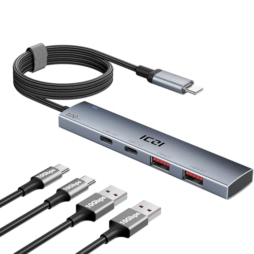 ICZI Hub USB C 3.2, 10Gbps, Multiprise USB C avec 120cm Cable Tressée en Nylon, Adaptateur Type C vers 2A2C Ports Aluminium Compatible avec iPhone 16, MacBook, iPad Pro Surface Pro Galaxy S24