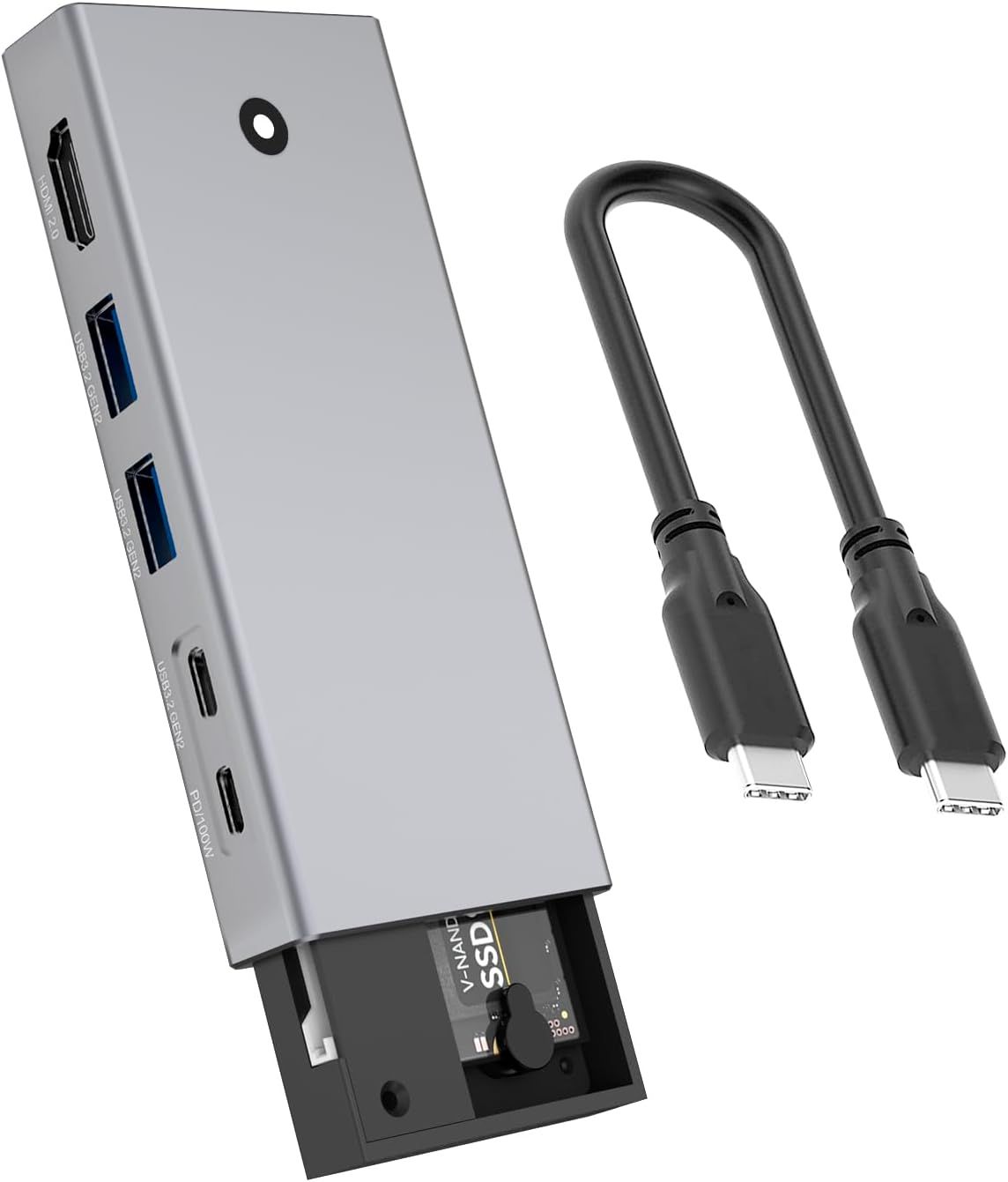 ZoraVson Boîtier SSD M2 NVME Station d'accueil avec USB C Hub 5en1, Adaptateur USB M.2, 10Gpbs USB 3.2 Gen2 M.2 NVMe et SATA SSD Adaptateur, Chargeur Rapide PD 100W, HDMI 4K@60Hz, Aluminium