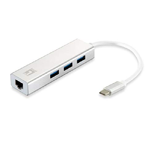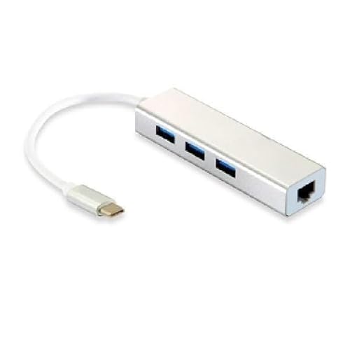 Ewent EW1141 Hub USB C, 3 Ports USB 3.0 et Adaptateur LAN 1000 Mbps Gigabit Ethernet RJ45, Hub de Transmission de données USB 3.0 Haute Vitesse pour Macbook, Chromebook