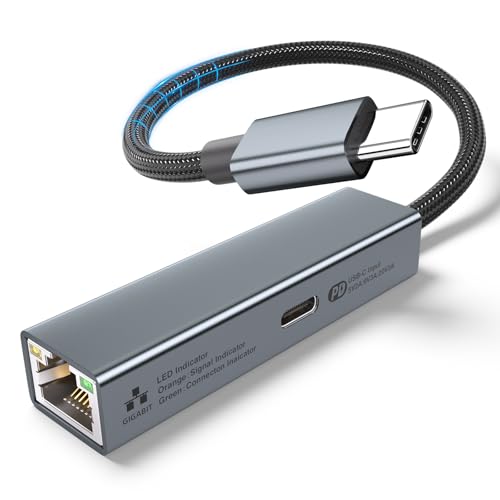 Adaptateur USB C vers Ethernet - USB-C Ethernet Port de Charge 60W, 1Gbps Type-C RJ45 Thunderbolt 3/4 vers Réseau LAN pour Laptop,MacBook Pro/Air,Dell XPS,Chromebook,Surface Book