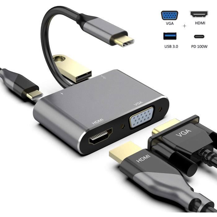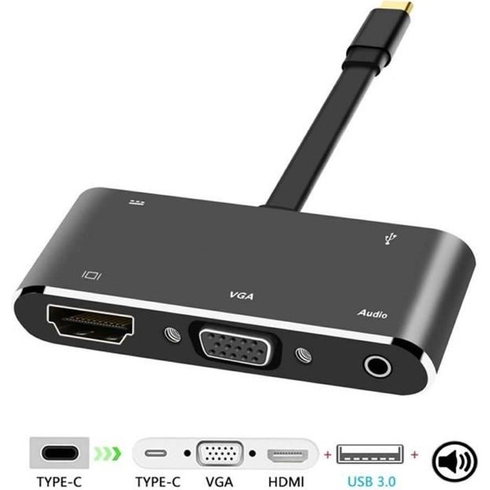 THINCAN Adaptateur convertisseur audio vidéo VGA HDMI 1080p compatible HDMI pour plusieurs moniteurs