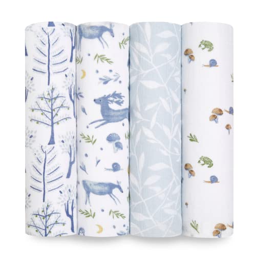aden + anais Boutique Lot de 4 couvertures d'emmaillotage bio 100 % mousseline de coton bio, grandes, douces et respirantes pour nourrissons – Langes légères et multi-usages – Rêves de safari