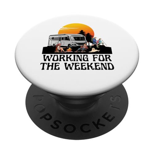 Camping Camping-Car Coucher de Soleil Travail Week-End RV Camping Fun PopSockets PopGrip Adhésif