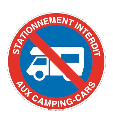 AUA SIGNALETIQUE - Panneau Stationnement Interdit au Camping Car - Ø 450 mm, Vinyl adhésif