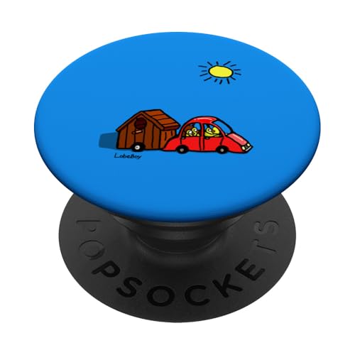 Joli Dessin animé Familial de Parc de Camping-Car dessiné à la Main par Lobeboy PopSockets PopGrip Adhésif