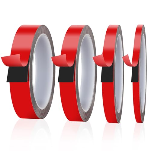Euqvunn Ruban Adhésif Double Face Extra Fort 3,0 m × 4 Rouleaux, Ruban Mousse Adhésif, pour Tapis, Crochets Muraux, Décorations, Bandes LED, Moustiquaire Fenetre (0,6/1/1,5/2 cm × 0,8 mm)