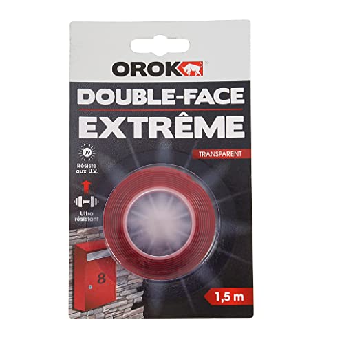 OROK - Ruban Adhésif Double Face Extérieur Extra Fort 1,5m x 19mm - Spécial Surfaces Transparentes - Résiste Aux U.V - Bricolage
