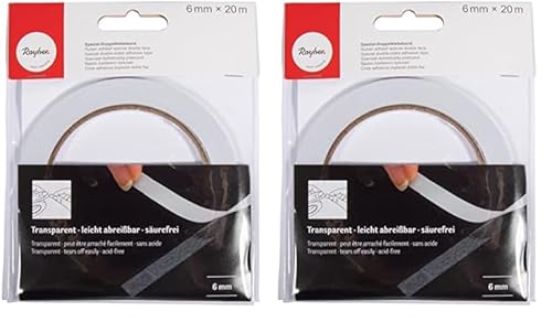 Rayher Ruban Adhésif Double Face Transparent Extra Fort 6mmx20m Scotch Adhésif Double Face pour Scrapbooking & Déco en Papier Ruban Adhésif Double Face Transparent, Claire (Lot de 2)