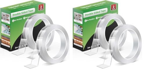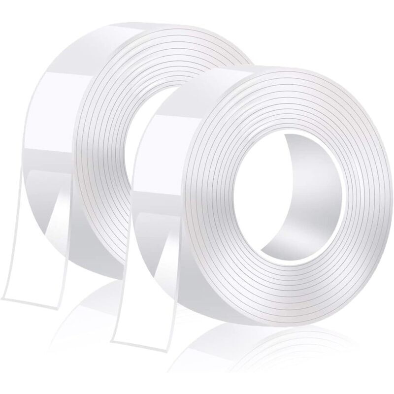 Euqvunn Ruban Adhésif Double Face Extra Fort, Nano Transparentes Ruban Adhésif, Amovible, Sans Traces, Lavable, pour Affiche/Suspension Murale/Tapis, 2 Rouleaux (3,0 m × 2,0 cm × 1 mm) (Lot de 2)