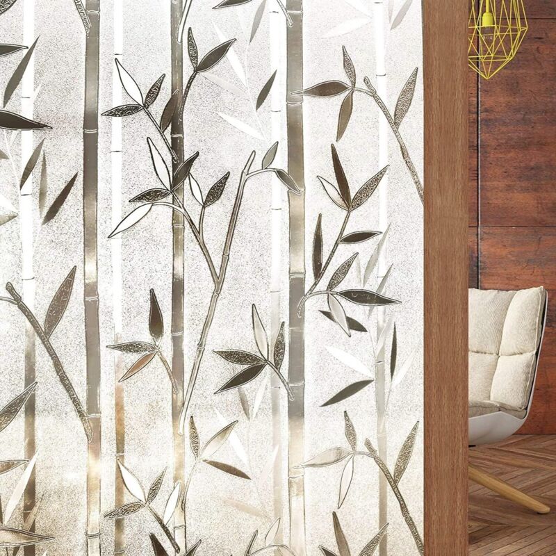 Film Occultant Fenêtre, Film Fenetre Anti Regard, Film pour Vitre Motif Bambou, Brise Vue Anti uv, Film Electrostatique vitre Non Adhesif, Film