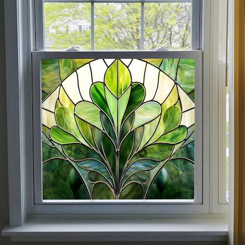 Qualsen Film Fenetre Anti Regard Effet Arc-en-Ciel 30 x 100cm, Film Electrostatique Vitre Motif de Feuille Verte Anti UV Non Adhesif Brise Vue Fenetre Décoratif Film Vitrail pour Chambre Cuisine