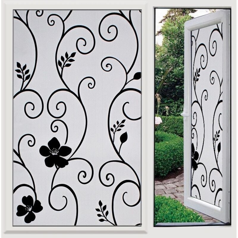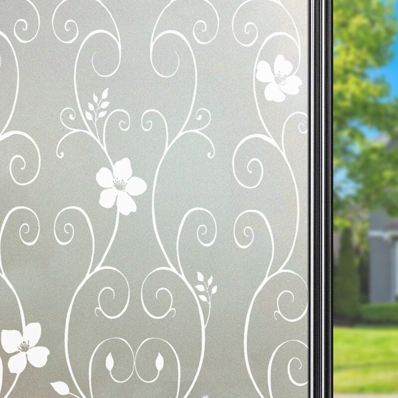 Film Fenetre Anti Regard Occultant44.5x200CM, Fleur Film Electrostatique Vitre Film Fenetre Anti Regard Adhesif pour Vitre Brise Vue Electrostatique