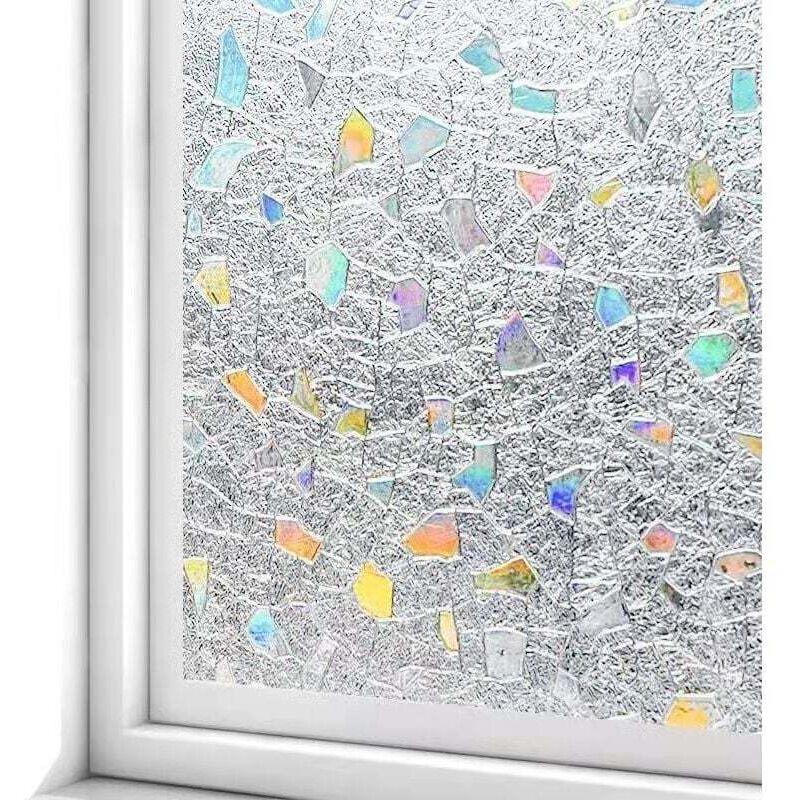 Qualsen Film Fenetre Anti Regard Effet Arc-en-Ciel 44 x 200cm, Electrostatique Vitre Motif en Losanges Anti UV Non Adhesif Vitrail Autocollant Fenetre Décoratif Brise Vue Fenetre pour Chambre Cuisine