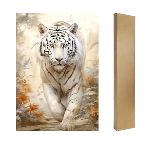 DCIDBEI DIY 5D Diamant Peinture Tigre Blanc 40x50cm Peinture par Numéros Animaux Tigre Blanc Puzzle Strass Broderie Point de Croix Mosaïque Adhésif Adultes Tiger Diamant Peinture Kit de Démarrage